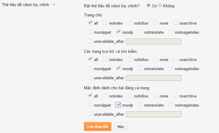 và cuối cùng là chỉnh sủa Thẻ tiêu đề robot tùy chỉnh – Bật thẻ tiêu đề robot tùy chỉnh